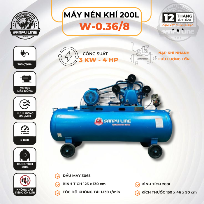 – Tên sản phẩm: MÁY NÉN KHÍ 200L W-0.36/8